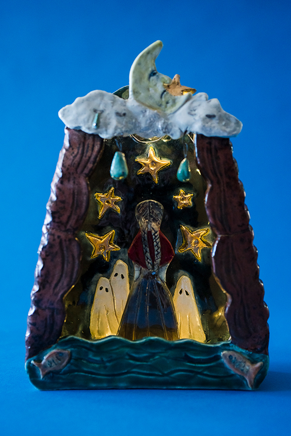 Jeane & Johnny pieces are conceptualized, painted, or hand sculpted by El Paso multimedia artist, Ruby Alarcón. She’s inspired by cultural traditions, stories, and natural surroundings from her youth and current environments. Several of her pieces explore a range of issues, contemporary and historical, often through the lens of wonderment and whimsy.